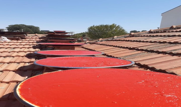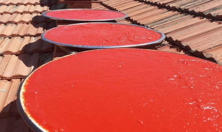 Manisa’nın Sarıgöl ilçesinde evlerde yapımına yoğun bir şekilde devam edilen domates ve biber salçalarının güneşte suyunu çekmesi için sinilerde evlerin çatılarına bırakılması ortaya renkli görüntüler çıkardı.