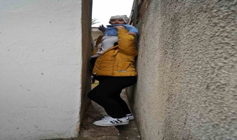 Antalya’da bir mahalledeki Kentsel Yenileme Projesi’nin güvenlik bariyerleri nedeniyle bahçe kapıları kapanan bazı mahalle sakinleri, bitişik iki evin arasındaki 34 santimlik alandan yan yürüyerek caddeye çıkabiliyor. Arka çıkış kapılarının yolu uzattığını, yaşlı ve kilolu vatandaşların o aralıktan geçemediğini söyleyen vatandaşlar, proje nedeniyle mağdur oldukları gerekçesiyle bir çözüm yolu bulunası gerektiğini söyledi. Söz konusu aralıktan geçmenin oldukça güç olduğunu dile getiren Meryem Sekin, "Yağmur yağdığında şemsiye bile açamıyoruz. Elbiselerimiz sürtünürken zarar görüyor. Çözüm yolu bulunmasını istiyoruz" dedi.