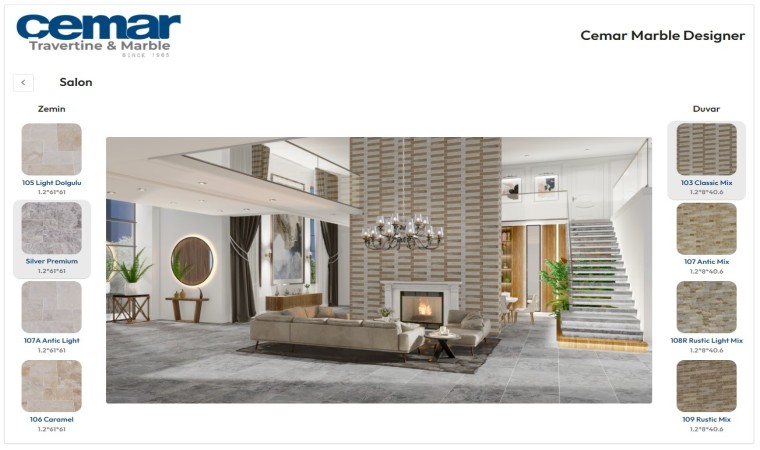 Manisa’nın Kula ilçesinden dünyanın dört bir yanına traverten taşı ihracatı yapan Cemar Traverten-Mermer, mermer ve traverten sektöründe öncü olmaya devam ediyor. Müşteriler artık web sitesindeki “Cemar Marble Designer” uygulamasıyla birbirinden farklı traverten taş modellerinin mekanlarında nasıl duracağını önceden görebilecekler.