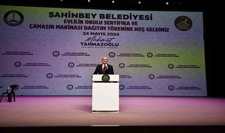 Evlilik Okulu Projesini önemsediklerini ifade eden Şahinbey Belediye Başkanı Mehmet Tahmazoğlu, "Allah çiftlerimizi mesut ve bahtiyar eylesin. Şahinbey Belediyesi olarak evlilikte yanınızda olduğumuz gibi çocuklarınız olduğunda da yanınızda olacağız. Göreve geldiğimiz günden bu yana ‘Hoş Geldin Bebek’ projemiz ile evinizdeki ilk ziyaretçiniz Şahinbey Belediyesi olacak. Bebeğinizin bakımı ile ilgili bilgilendirmeler yapılacak. Sonraki yıllarda da ana sınıfından başlayarak eğitimlerinde de onların yanında olacağız. Evlilik insan hayatında çok önemli bir dönüm noktası. İnsana hem dünyasını hem de ahiretini kazandıracak bir müessese. Eşinizle iyi iseniz eviniz cennet hayatı, eşinizle aranız iyi değilse eviniz cehennem hayatına döner. Bu nedenle eşler birbiriyle iyi olmak zorunda. Aile mutlu olursa toplumda huzurlu olur. Bu nedenle elimizden geldiği kadar fedakârlık yaparak aileyi ayakta tutmaya gayret etmemiz gerekiyor. Şimdiden tüm çiftlerimizi tebrik ediyor, mutluluklar diliyorum” diye konuştu.