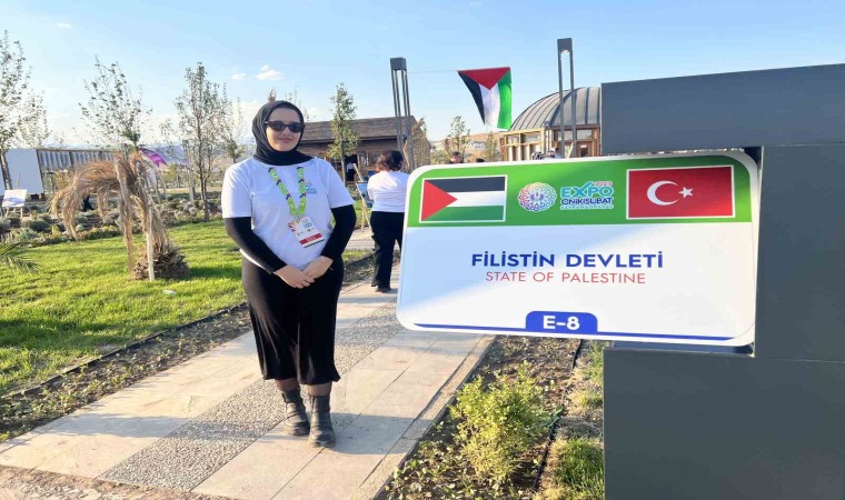 Alanla ilgili bilgi veren Fidelya Arıcı isimli görevli, “Maalesef savaş dolayısıyla burayı dikkat çekmek amaçlı burada standımızı açtık ve girişimize koyduk. Yine içeride EXPO’nun amacına özel, ülkede yetişen bitkileri ve tarihi yapıları tanıtıyoruz. Burası yine Kudüs’ten ilham alınarak yapılmış şekli. İçerisinde halkından gelen sedef çalışması ver örtüler var” ifadelerini kullandı.