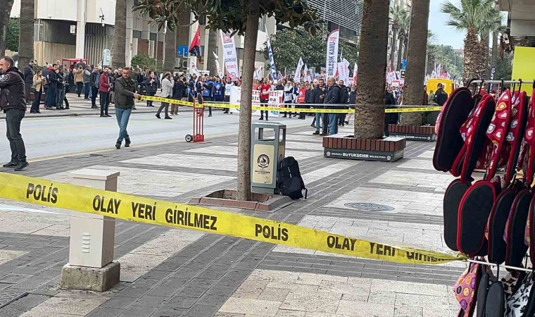 Denizli’de iş bırakan beş sendikaya bağlı öğretmenlerin yürüyüş güzergâhında bulunan CHP il binası önüne bırakılan şüpheli sırt çantası fünyeyle patlatıldı. Güvenlik tedbirleri altında patlatılan çantadan daha birkaç dakika önce mağazadan satın alınan 7 bin liralık yeni kıyafetler çıktı.