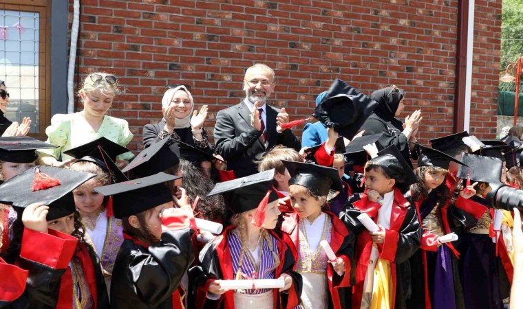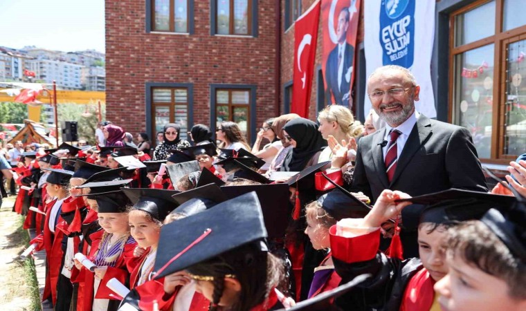 Törenin açılışında konuşan Başkan Dr. Mithat Bülent Özmen, “İnşallah bu güzel yavrularımızın liseden mezuniyetlerini, üniversiteden mezuniyetlerini hep beraber göreceğiz. Bütün dileğim o. Mutlulukları, başarıları daim olsun inşallah. Bütün öğretmenlerime, bütün idareci arkadaşlarıma teşekkür ediyorum. Muazzam iş çıkarıyorlar. Buradan bir bilgi daha vermek istiyorum. Önümüzdeki çok kısa süre içerisinde belirli yerleri dönüştürerek 7 tane anaokulunu daha Eyüpsultan’ın hizmetine sunacağız. Talebin farkındayız. Sayımızı çok hızlı artıracağız. Hedefimiz, her mahallede 1 tane, bazılarında 2 tane olmak üzere bu sayıyı 40’a çıkarmak. Çocuklarımızın eğitimde fırsat eşitliğine, kaliteli eğitime ihtiyacı var. Bunu hep birlikte başaracağız” ifadelerini kullandı.