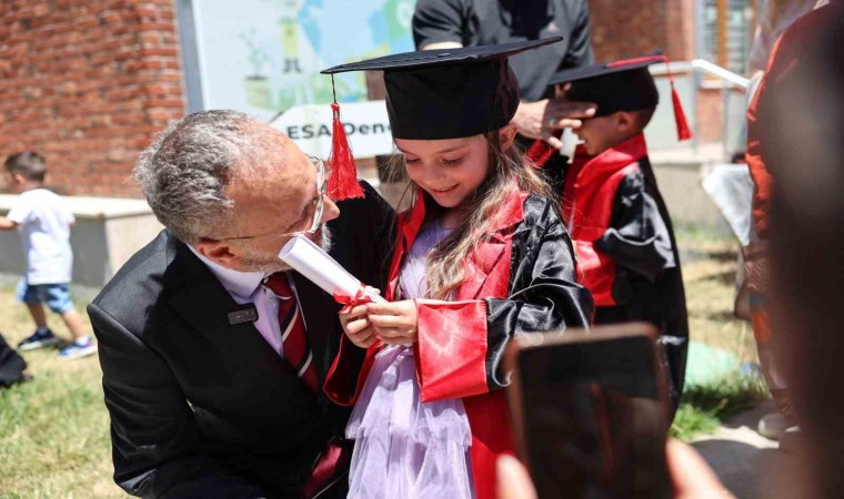 Eyüpsultan Belediyesi Anaokulları ve Akademisi’nde (ESA) eğitim alan minikler için kep atma töreni düzenlendi. Eyüpsultan Belediye Başkanı Dr. Mithat Bülent Özmen’in de katıldığı tören Karadolap’ta bulunan ESA’nın bahçesinde gerçekleştirildi. Eğitimlerini “Ezbere Değil Deneyime Dayalı Eğitim” prensibiyle sürdüren ESA’dan mezun olan minikler için düzenlenen tören, saygı duruşu ve İstiklal Marşı’nın okunmasıyla başladı. Törende, anaokulu öğrencisi miniklerin hazırladığı birbirinden güzel ve eğlenceli gösteriler izleyenlerin büyük beğenisini topladı. Öğleden önce ve öğleden sonraki gruplar için iki ayrı törenin sonunda minikler kep atarak mezuniyet sevincini yaşadı.
