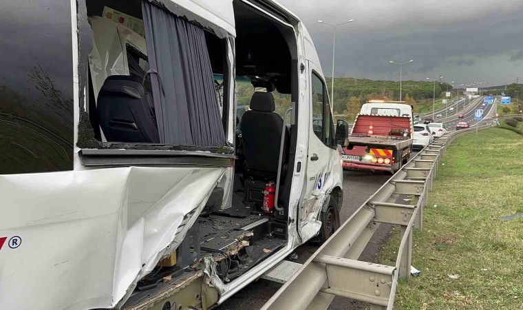 Kaza, sabah saat 07.40 sıralarında Eyüpsultan yaşamkent kavşağında gerçekleşti. 34 LCS 867 plakalı servis minibüsü kavşağa geldiği esnada yağışlı havanında etkisiyle sürücüsünün kontrolünden çıkarak bariyerlere çarptı. Çarpma nedeniyle servis minibüsünün kapısı yerinden çıktı. Kazada sürücüyle birlikte toplam 6 işçi yaralandı. İhbar üzerine olay yerine polis ve sağlık ekipleri sevk edildi. Sağlık ekipleri ilk müdahalelerini olay yerinde yaptığı yaralıları tedavi edilmeleri için çevre hastanelere kaldırdı. İşçilerin sağlık durumlarının iyi olduğu öğrenildi. Polis ekipleri kaza ile ilgili çalışma başlattı.