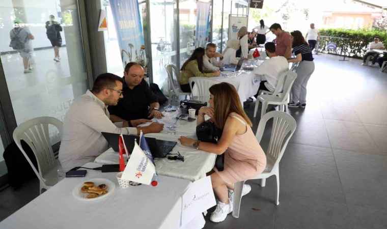 “Bu Fuar Senin İçin Eyüpsultan” sloganıyla Osmanlı Park Nikah Salonu’nda gerçekleşen fuarı ziyaret eden Eyüpsultan Belediye Başkanı Dr. Mithat Bülent Özmen, hem iş başvurusunda bulunmak için gelen vatandaşlarla hem de fuara katılan firma temsilcileriyle görüştü.