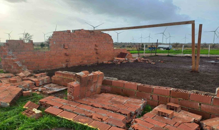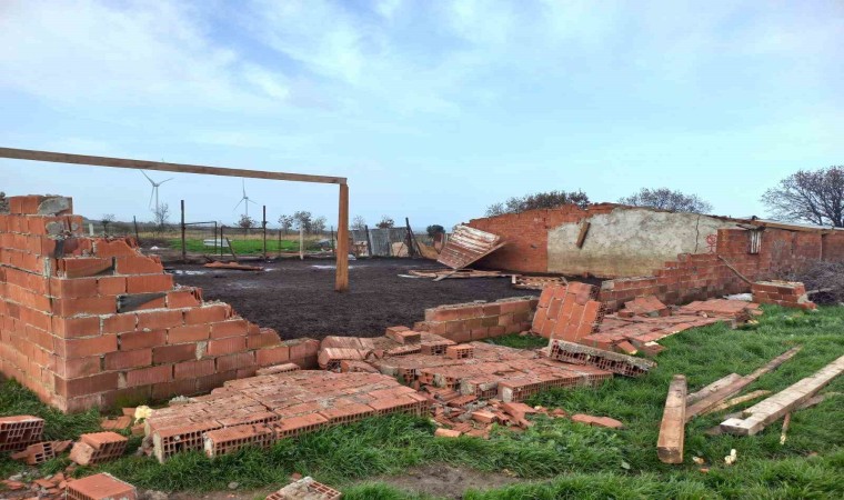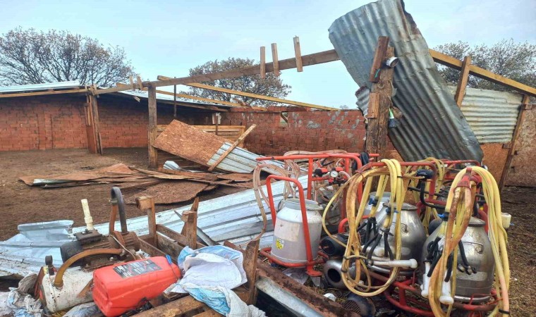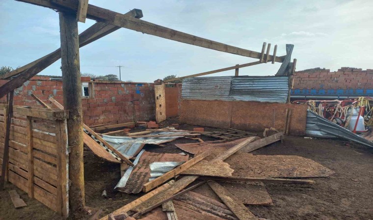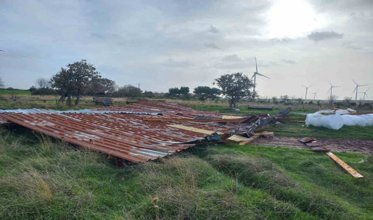 Çanakkale’nin Ezine ilçesine bağlı Üvecik köyünde, 130’a yakın küçükbaş hayvanın bulunduğu ağılın çatısı fırtına nedeniyle uçtu.