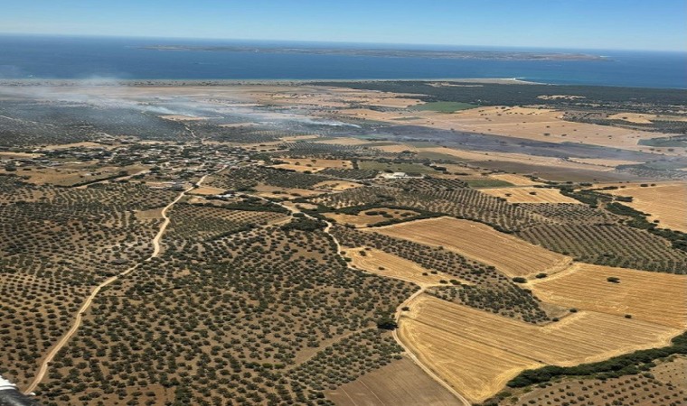 Çanakkale’nin Ezine ilçesinde tarım arazisinde başlayan ve rüzgarın etkisiyle büyüyen yangın, ormanlık alana sıçramadan, ekiplerin havadan ve karadan müdahalesiyle kontrol altına alındı.