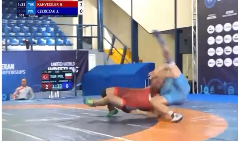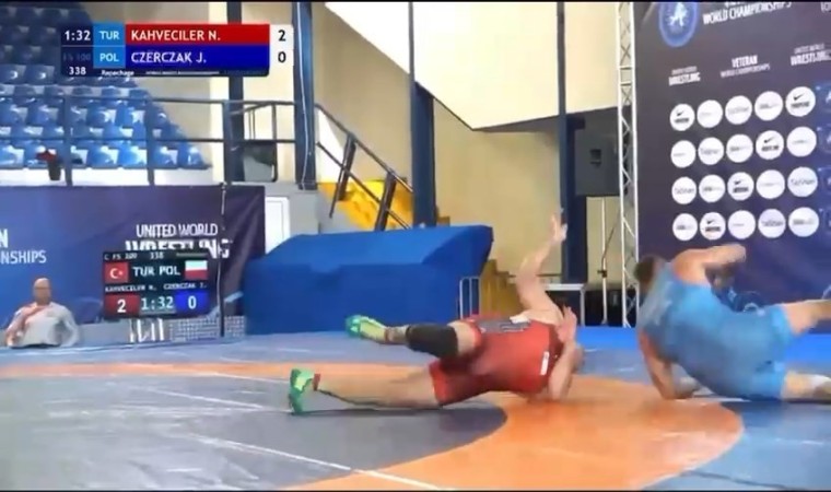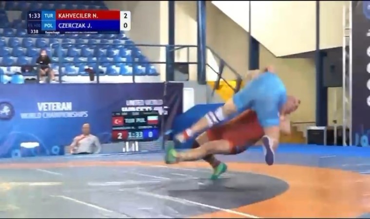 Dünya Veteranlar Güreş Şampiyonası çeyrek final mücadelesinde Nazmi Kahveciler’in Polonyalı rakibine yaptığı ’çipe’ oyunu sosyal medyada izlenme rekorları kırdı. Temizlik fabrikasında işçi olarak çalışan dünya şampiyonu güreşçinin hareketi, turnuvanın en teknik ve jenerik oyunu seçildi.