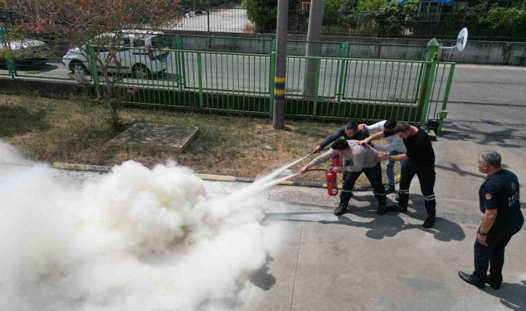 İtfaiye ekipleri fabrika çalışanlarına da yangın konusunda teorik ve uygulamalı eğitim verdi. Fabrika çalışanlarına da verilen eğitim kapsamında açık alanda çıkan yangın, itfaiye ekiplerinin kontrolünde fabrika çalışanları tarafından söndürüldü.