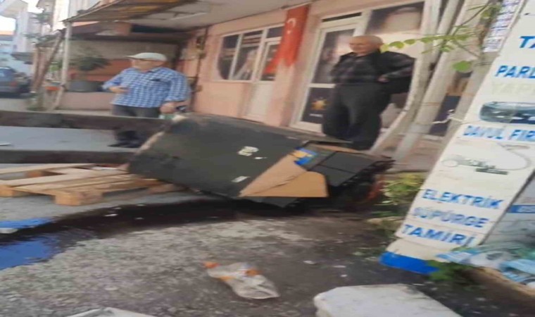 Dükkan sahibi Tahir Çetinkaya, “Yukarıdaki BİM marketten, paleti elinden kaçırmışlar. Doğalgaz kutusuna, oradan benim dükkanın önüne çarptı. Panikle dışarıya fırladık. İster istetemez bir korku yaşadık, yoğun gürültüyle indi. Bütün içecek şişeleri üstündeydi. Şişeler komple yuvarlandı, transpalet dükkanın önüne vurup devrildi. Akünün suları yayıldı, etraf bir anda savaş alanına döndü. Burada çocuklar son anda kurtardı kendini” dedi.