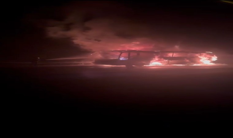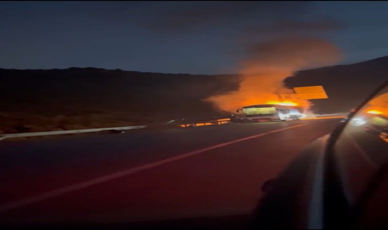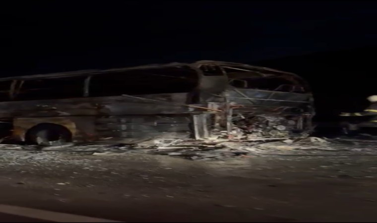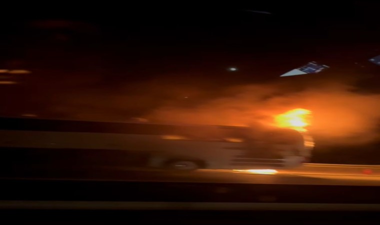 İtfaiyenin müdahalesi ile yangın söndürülürken yolcu otobüsü tamamen yanarak kullanılamaz hale geldi.