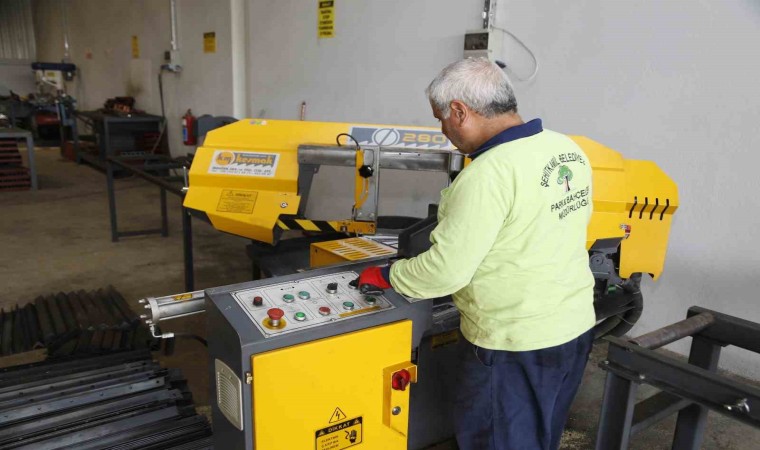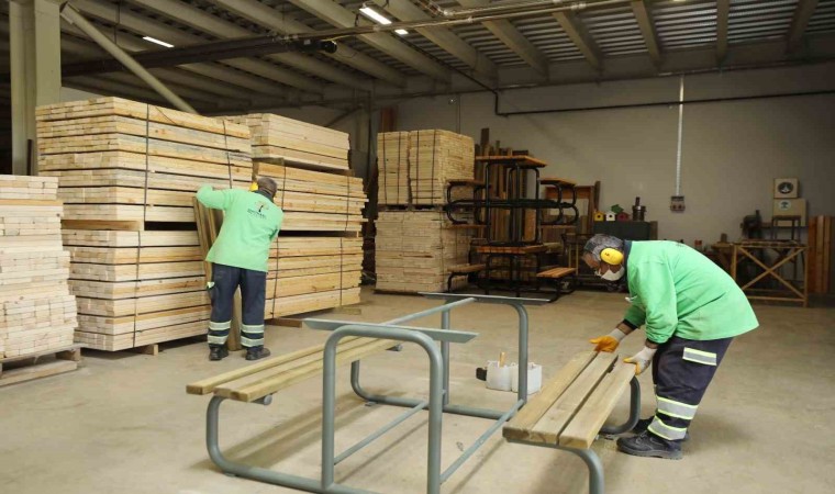 Fadıloğlu, ürettikleri hizmetlere ilişkin, “Park ve Bahçeler Müdürlüğü bünyesinde oluşturduğumuz atölyelerimizde, kent mobilyalarımızı kendimiz üretiyoruz. Kurduğumuz tesiste uygulanan emprenye işlemi sayesinde kullandığımız ahşap malzemeler, en ağır şartlarda bile yüksek hizmet ömrüne sahip oluyor. Zamanla yıpranan kent mobilyalarını da gerekli revizyon işlemlerinden geçirerek tekrar kullanılabilir hale getiriyoruz. Kullandığımız tüm malzeme ve parçalar, barkod sistemi ile kayıt altına alınarak kullanılıyor. Normal bank, masalı bank, çatılı bank, çöp kovası, pergole, ağaç çevresi oturma bankı yapımını gerçekleştiriyoruz. Ofis masası ve ofis dolabı; kazma, kürek, çapa, fırça sapı ve herek imalatı; hediyelik çiçek kasası, oyun grubu ve fitness montaj ve tamiratı da yapıyoruz. Ayrıca köpek parkı için egzersiz oyun aletleri ile kuş yuvası ve kedi evi imalatı da gerçekleştiriyoruz. Geri dönüştürülmüş materyallerden normal bank, masalı bank, çatılı bank, çöp kovası, oyun grubu imalatı gerçekleştirmekteyiz. Atölyelerimizde bunlar dışında korkuluk, bayrak direği, rögar kapağı vs. yapımı, futbol kalesi, basket potası, voleybol direği yapımı, okullarda sıra, oyun ve spor alanı çizimi, emprenye boyama ve fırınlama, bank, trafo binası, aydınlatma direği, park levhası, duvar vs. boyama hizmetleri sunmaktayız. Kısacası, her ihtiyacımızı karşılayacak bir yapı oluşturduk” diye konuştu.