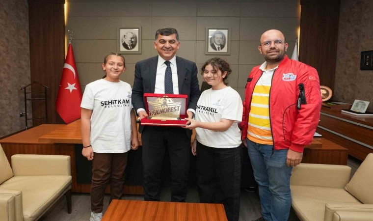 TEKNOFEST İzmir Deneyap Fikir Maratonu çerçevesinde düzenlenen Sürdürülebilir Şehirler Fikir Maratonu Yarışması’nda ortaokul kategorisinde Türkiye 1.’si olan Bilim Şehitkamil Deneyap öğrencileri Zeynep Çete ile Tuğba Altun, Şehitkamil Belediye Başkanı Rıdvan Fadıloğlu’nu makamında ziyaret etti. Zeynep Çete ve Tuğba Altun, Şehitkamil Belediye Başkanı Rıdvan Fadıloğlu’na vermiş olduğu maddi ve manevi desteklerinden dolayı teşekkür etti.