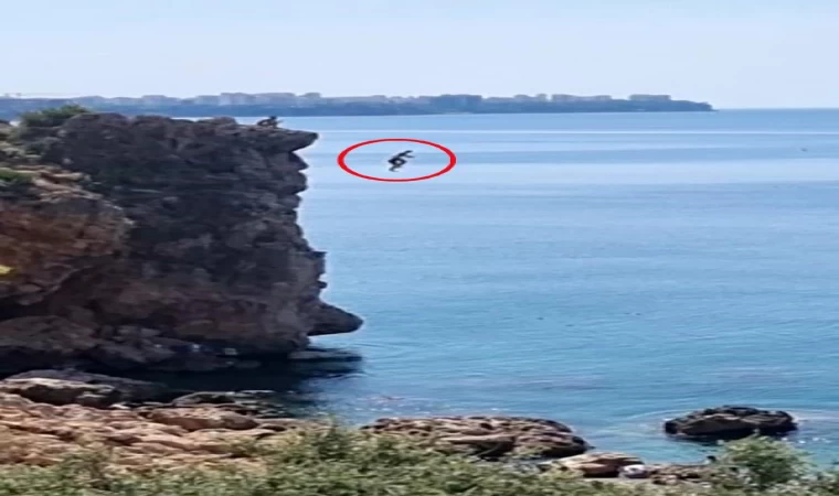 Konyaaltı Sahili'ndeki falezler yaz aylarında doğal güzelliğiyle denize giren ve güneşlenenlerin uğrak yeri oldu. Muratpaşa ilçesinden Konyaaltı Sahili'ne gidilen Varyant bölgesindeki falezlerde 2 arkadaşın el ele tutuşup yaklaşık 25 metre yükseklikten denize atlayışları çevredekilere korku dolu anlar yaşattı. Denize dengesiz düşen 2 genç kısa süreli sersemlik yaşadıktan sonra sahile çıktı. Falezlerden arkadaşlarını izleyen 2 genç ise patikadan onların yanına, sahile indi. Tehlikeli atlayış bir turistin cep telefonu kamerasına yansıdı. (DHA)