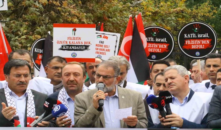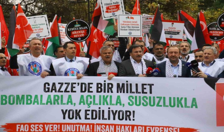 Tarım-Orman Çalışanları Birliği Sendikası (TOÇ BİR-SEN) üyeleri, İsrail’in Gazze’ye saldırıları nedeniyle Birleşmiş Milletler (BM) Gıda ve Tarım Örgütü’nün Ankara’daki yerleşkesi önünde eylem yaptı.