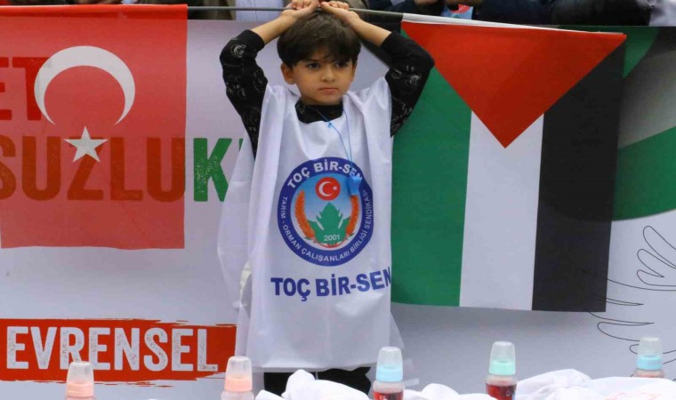 TOÇ BİR-SEN Genel Başkanı Hüseyin Öztürk, yaptığı konuşmada Filistin’in insanlık tarihinin en vahşi soykırımlarından biriyle karşı karşıya geldiğini söyledi. Filistin topraklarının günlerdir fosfor bombalarıyla vurulduğunu belirten Öztürk, “İşgalci, katil terör örgütü İsrail, kundaktaki bebe, çocuk, kadın, yaşlı demeden katlediyor ve Filistin’deki sistematik işgale devam ediyor” dedi.