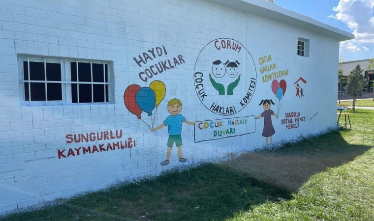 Sungurlu Kaymakamlığı destek ve himayelerinde Sungurlu Sosyal Hizmet Merkezi Çocuk Hakları Komitesi bünyesinde kayıtlı çocuklarla birlikte, çocuk hakları konusunda farkındalık oluşturmak ve bilinç kazandırmak amacı ile Fatih Ortaokulu öğretmeni Kürşat Biçer’in çizimi ve yönetimi ile Çocuk Hakları Duvarı boyama etkinliği Kent Park’ta düzenlendi.