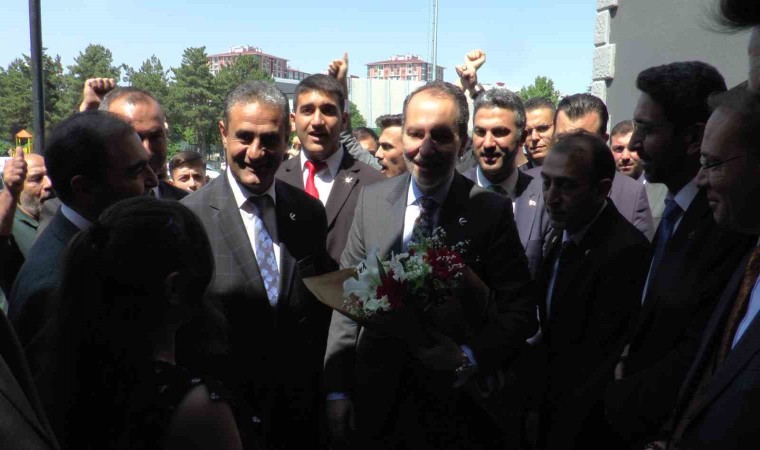 Fatih Erbakan konuşmanın ardından AK Parti’den Yeniden Refah Partisi’ne geçen yeni üyelerine parti rozetlerini taktı.