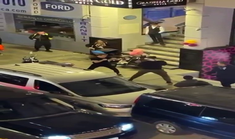 Fatih Aksaray’da iki kişi sokak ortasında gardını alarak birbirlerine vurdu. Şahısların kavga ettiğini gören kadın çığlık atarak uzaklaştı. Boks ringini aratmayan kavga kameralara yansıdı.