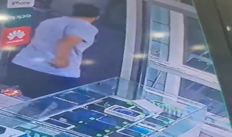 Yaşanan olay iş yerinin güvenlik kameralarına saniye saniye yansıdı. Görüntülerde, şüpheli şahsın bir cep telefonunu incelediği ve daha sonra koşarak kaçtığı görülüyor.