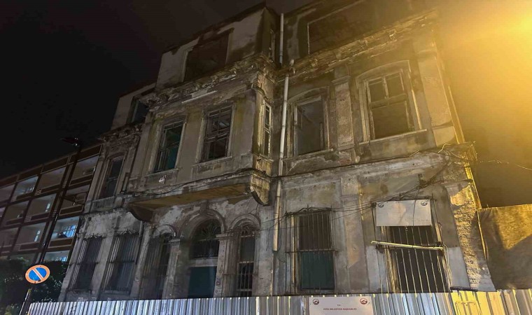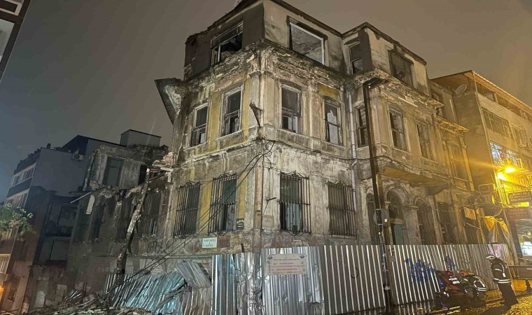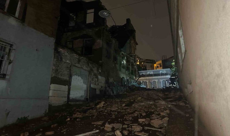 Fatih’te üç katlı metruk bir binada yoğun yağış nedeniyle kısmi çökme meydana gelirken, binadan düşen parçalar yola savruldu.