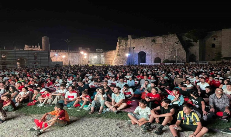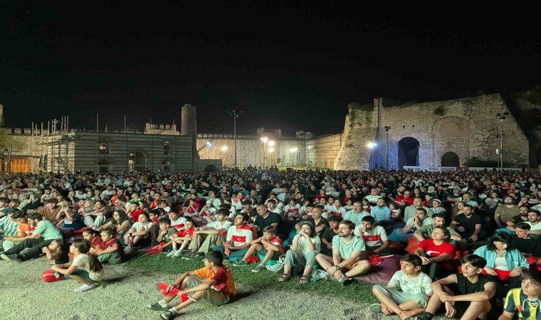 A Milli Futbol Takımı’nın EURO 2024 son 16 Turu’nda Avusturya’yı 2-1 mağlup ettiği mücadeleyi İstanbullular, Yedikule Hisarı’nda kurulan dev ekrandan takip etti.