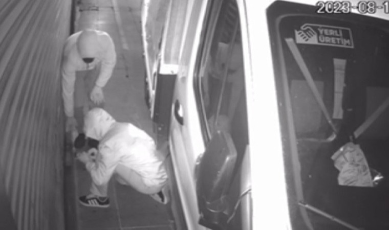 Yaşanan hırsızlık anları mağazanın güvenlik kameralarına saniye saniye yansıdı. Görüntülerde, kamyonetin altına saklanan şüphelilerin kepengi kaldırarak içeri girmesi ve hırsızlık yaptığı anlar görülüyor.