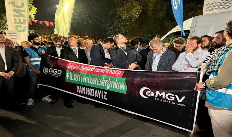 Fatih’te yüzlerce kişi Filistin’e destek için bir araya geldi.