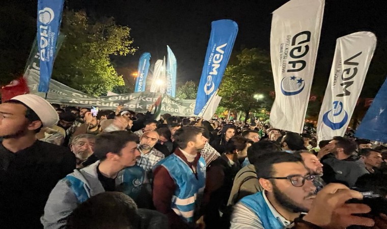 Fatih Camii’nde akşam saatlerinde yüzlerce kişi, Anadolu Gençlik Derneği (AGD) tarafından düzenlenen ‘Fetih Yürüyüşü ’ne katıldı. Filistin’e destek vermek için bir araya gelen topluluk, sloganlar atarak Fatih Anıt Parkı’na doğru yürüyüş yaptı.