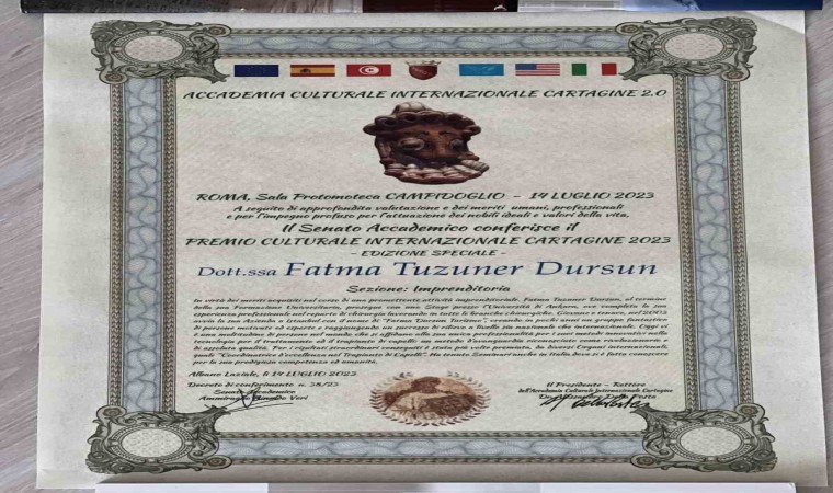İtalya’nın başkenti Roma’da düzenlenen Kartaca Uluslararası Kültür Ödül Töreni (Premio Internazionale Cartagine) organizasyona ev sahipliği yaptı. İş ve sanat dünyasından çok sayıda özel ismin davetli olarak yer aldığı törende FD Hair Transplant Kurucusu ve Saç Ekim Uzmanı Fatma Dursun da İtalya’da düzenlediği konferanslardaki başarısı ve Türkiye’de ulaştığı potansiyel nedeniyle saç ekimi alanında ‘Sağlık Turizmi Başarı Ödülü’ne layık görüldü. Törene Türkiye’den davet edilen tek isim olan Fatma Dursun oldu.