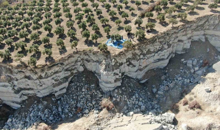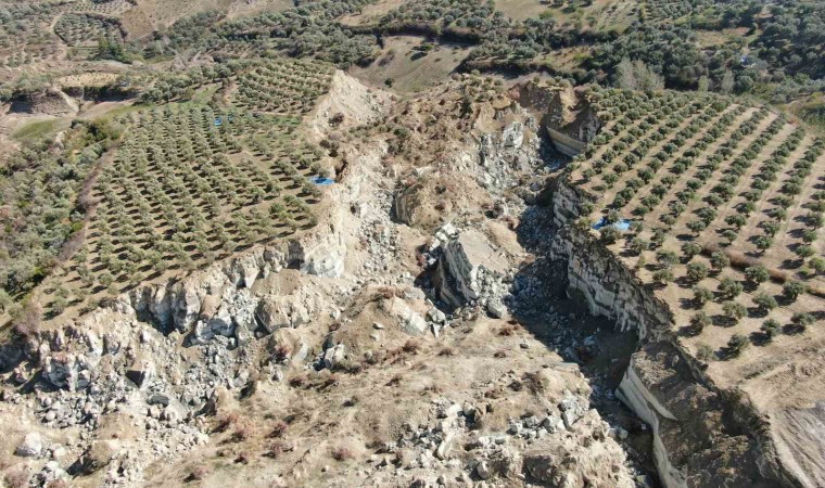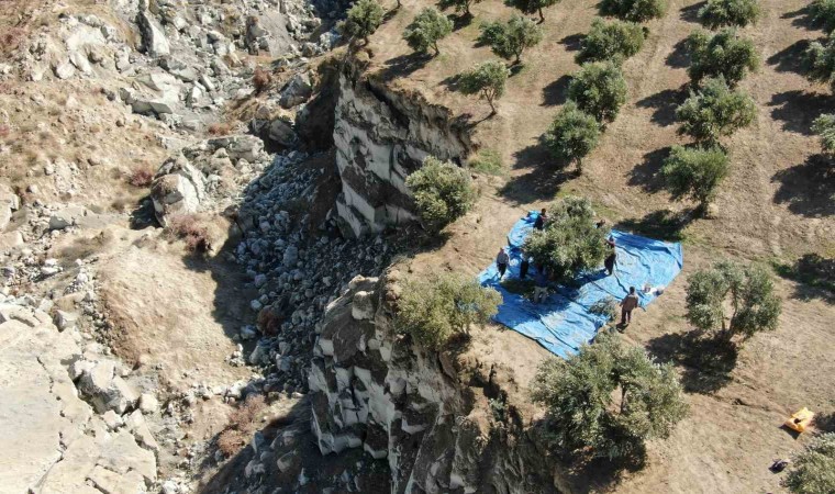 Hatay’da depremin ortadan ikiye ayırdığı 33 dönümlük zeytin bahçesinde hasat başladı. Depremzede aile, fay hattının devasa bir yarık oluşturduğu bahçede tedirginlik içerisinde hasada devam ediyor.