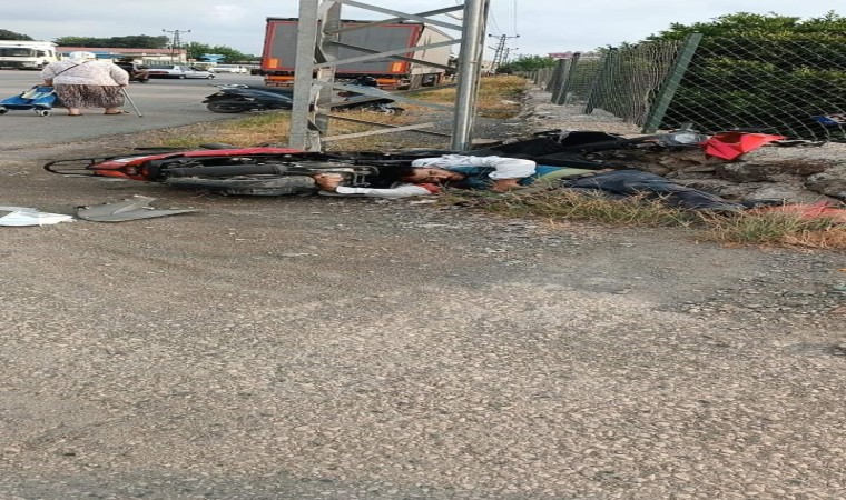 Hatay’ın Dörtyol ilçesinde hafif ticari araçla motosikletin çarpışması sonucu meydana gelen trafik kazasında motosiklet sürücüsü hayatını kaybetti. Motosiklet sürücüsünün metrelerce havaya uçtuğu feci kaza güvelik kamerasına yansıdı.
