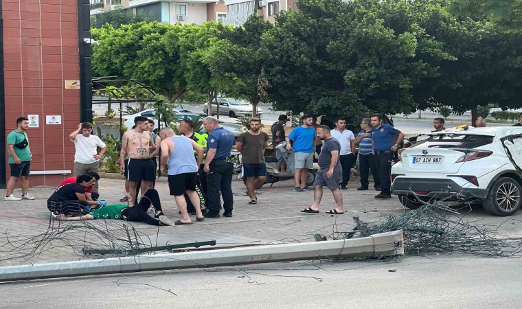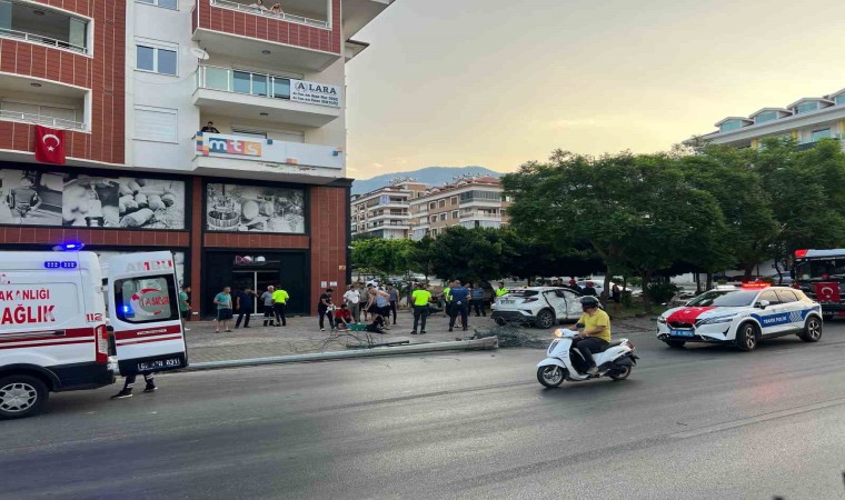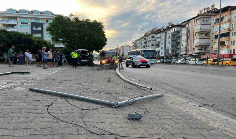 Antalya’nın Alanya ilçesinde aşırı hız yapan sürücünün kontrolünden çıkan otomobil, önce ticari taksiye ardından refüjdeki aydınlatma direğine çarptıktan sonra karşı şeride savruldu. Alkollü olduğu iddia edilen sürücü, olay yerine gelen polis ve sağlık ekipleriyle tartıştı.
