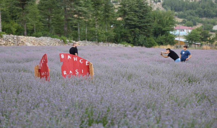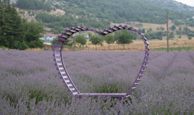 Tarla sahibi kadınlar ata yadigarı toprakları turizme kazandırırken lavanta tarlalarına astıkları dev Türk Bayrağı ile de dikkat çekti.