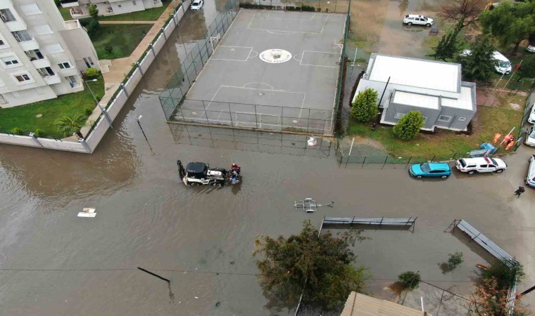 Antalya’da yaşanan kuvvetli yağmurun ardından bir mahalle adeta sular altında kaldı. Mahallede mahsur kalanlar kepçe ile kurtarılırken, araçlar ise adeta suya gömüldü. Dron ile görüntülenen mahallede balkonlarda çok sayıda kişinin beklediği görüldü.