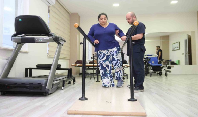 Eskişehir Fizyomer Terapia Estetica Denta Fizik Tedavi ve Rehabilitasyon Tıp Merkezi’nin Kurucusu ve Tıbbi Direktörü Uzm. Dr. Türkan Tünerir, "Hastamız rehabilitasyon için Amerika’dan bize geldi. 2 yıl önce beyin kanaması sonrasında bir ameliyat geçiriyor ve ameliyatın ardından sol tarafında felç oluşuyor. Bu sürede Amerika’da çeşitli tedaviler ile fizik tedavi ve rehabilitasyon görüyor. Fakat, yeterli tedavi olamadığı için 2 yıldır yürüyemiyor. Bize tekerlekli sandalyeyle gelmişti. Hastamız, gereğinden çok fazla nörolojik ilaç kullanmaktaydı. Onların yan etkileri nedeniyle de hasta bazı beyin fonksiyonlarını yapamıyordu, bizimle göz teması kuramıyordu ve konuşamıyordu. Obezitesi mevcut olduğundan diyet de uyguladık. Kendisi 120 kilo civarında ama, verdiği kiloyla hareket edebilme yeteneğini ve hemipleji tedavisiyle de yürüyebilme yeteneğini 2 yıl sonra yeniden kazandı. Bu kadarını hayal etmiyordu. Önce, sadece paralel barda adım attırmaya başladık. Fizyoterapistlerimiz eşliğinde 3 nokta destekli bastonla ve 2 kişinin desteğiyle koridorda ayağa kaldırarak birer adım attırdık. Daha sonra, kendisi desteksiz bir şekilde bastonla yürümeye başladı. Artık gülümsüyor ve tedavisini 1 ay daha uzattı. Buradan sonraki amacımız, onu bastonsuz olarak yürütmeye çalışmak" dedi.