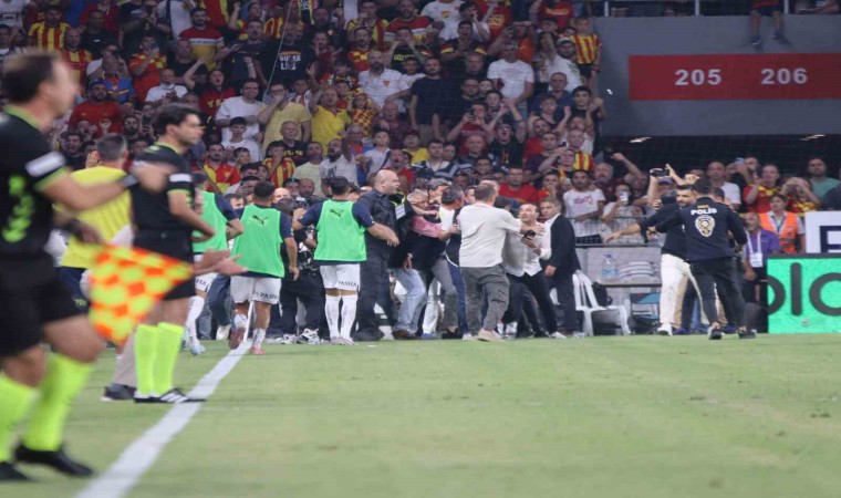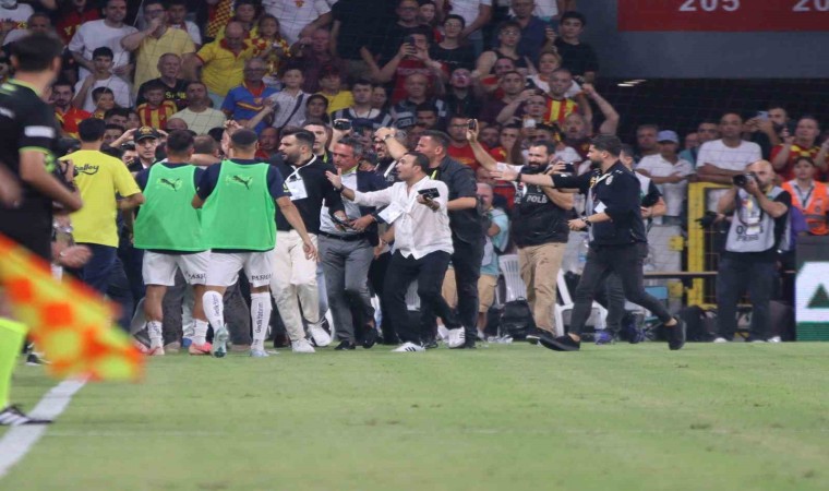 Trendyol Süper Lig’in 2. haftasında Göztepe ile Fenerbahçe karşılaşıyor. İlk yarısını sarı-lacivertlilerin 2-0 önde kapattığı müsabakanın ikinci yarısının ilk dakikalarında saha karıştı. Fenerbahçe Başkanı Ali Koç, tribüne giremeyen sarı-lacivertli taraftarlarına destek olmak amacıyla deplasman tribününe gitti. Güvenlik önlemleri altında tribünden ayrılarak oyuncuların çıkış tüneline hareket eden Başkan Koç’a tribünlerden şişe ve yabancı maddeler atıldı. Bir şişenin isabet etmesi ve görevlilerden birinin itmesiyle Ali Koç yerde kalırken, daha sonra ev sahibi kulüp görevlileri ile Ali Koç ve korumaları arasında arbede yaşandı. Hakem Kadir Sağlam bu sırada oyunu durdururken, Başkan Koç’un sahadan çıkmasıyla karşılaşma kaldığı yerden devam etti.