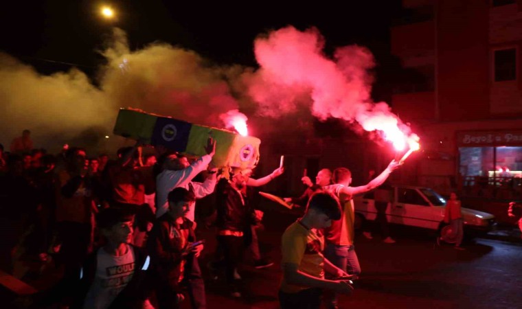 Galatasaray taraftarları, Fenerbahçe’nin kartondan tabutunu yaparak Oltu Kalesi Meydanı’nda bulunan Tesbih Heykeli’nin tepesine çıkardılar. Daha sonra tabutu omuzlarına alarak Oltu caddelerinde tur attılar. Araçlarla konvoylar trafiği kitleme noktasına getirdi.