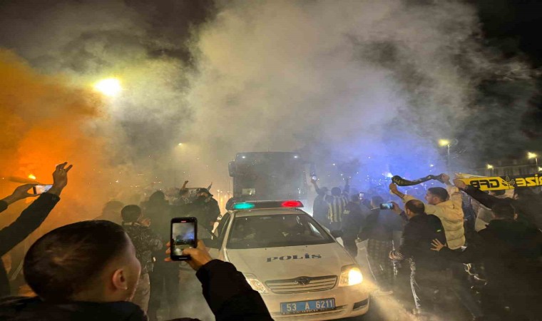 Trendyol Süper Lig’in 26. haftasında Çaykur Rizespor, yarın saat 19.00’da Fenerbahçe’yi konuk edecek. Fenerbahçe kafilesi uçaklarının arızalanması sonucu 17.15’de kalkış yapması planlanırken saat 22.00’da yaptı. Uçağın geç gelmesinden ötürü takım otobüsü havalimanının apronuna kadar girdi. Uçaktan inen sarı-lacivertliler otobüs ile kalacakları otele doğru yola çıktı. Fenerbahçe ekibinin kalacağı otelde yoğun güvenlik önlemleri alındı. Basın mensupları ve taraftarlar otele yaklaştırılmadı.