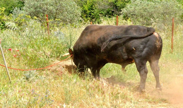 Feriştah Korkmaz, 7 yıldan bu yana boğa güreşlerini takip edip, pehlivan boğa yetiştirdiğini söyledi. Pehlivan boğa yetiştirdikten sonra kısa sürede çok sayıda kupa ve madalya sahibi olduğunu, geleceği parlak boğaları keşfedip yetiştirmeye başladığını kaydeden Feriştah Korkmaz, "Boğalarıma kendi çocuklarım gibi bakıyorum. Bu boğamızın adı Rasko. 2023 Kafkasör Büyük Orta Yıldızlar Şampiyonu olan bu boğamız, 650 kilogram ile Ege’de boy gösterecek" dedi.
