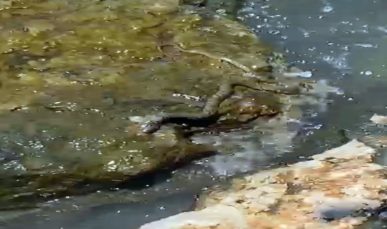 Aşırı sıcak bir ülke olduğu için Türkiye’de pek çok yılan türü görülürken, Muğla’nın Fethiye ilçesinde pek çok kişinin ilk defa karşılaştığı bir yılan türü görüntülendi. Fethiye Limanı yakınlarındaki kayalıklarda görüntülenen ilginç görünümlü yılan bir süre sonra gözden kayboldu.