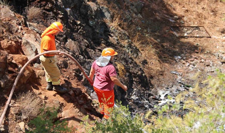 Muğla Fethiye yarımada bölgesi, Küçük Samanlık Plajı işletmesinde çöp kutusunda çıkan yangın, itfaiye ekiplerinin hızlı müdahalesiyle ormanlık alana sıçramadan söndürüldü.