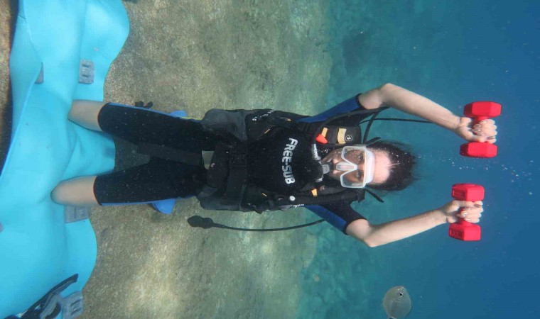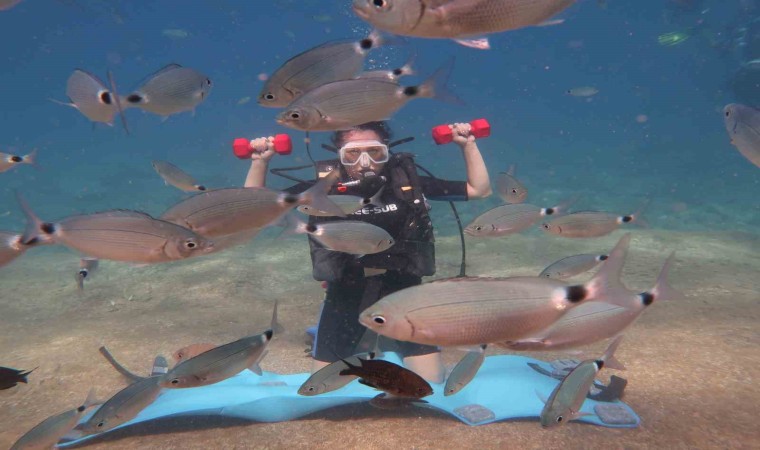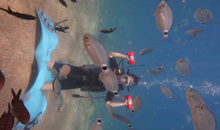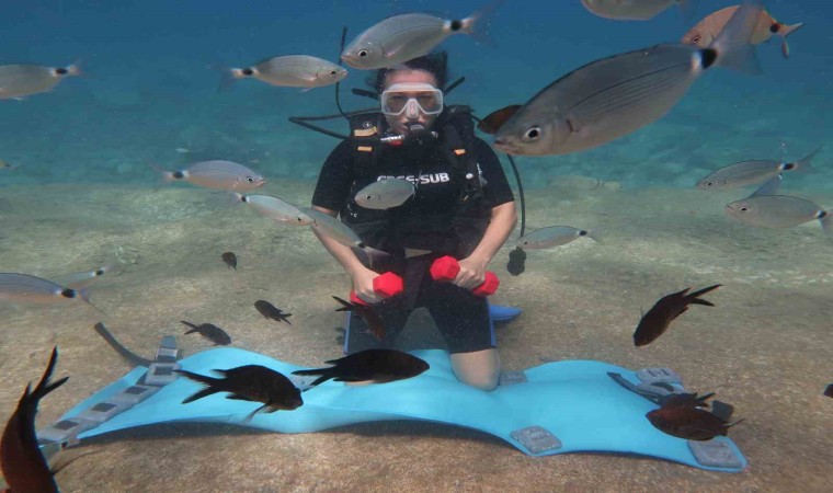 Muğla’nın Fethiye ilçesinde denizin 5 metre altında spor yaparak, sağlıklı yaşama dikkat çektiler.