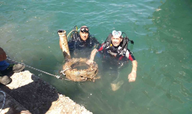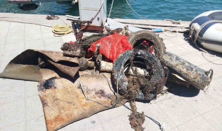Kamyon lastiklerinden boru ve pet şişelere, mangaldan pek çok atık maddesinin çıkartıldığı deniz dibinden market arabasının da çıkması görenleri hayrete düşürdü.