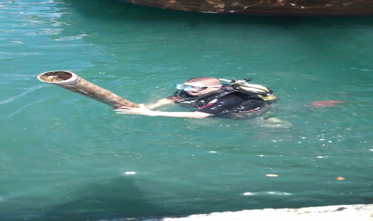 Fethiye’de dalış eğitmenlerinden Muhittin Şahin ve toplam 7 dalgıç sabah saatlerinden itibaren kordon boyunda dalıp deniz dibi temizliği yaptı.