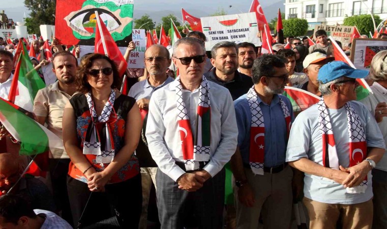 Fethiye Birlik ve İyilik Platformu tarafından Filistin’e destek amacıyla yürüyüş ve miting etkinliği düzenlendi. Yoğun bir katılımla gerçekleştirilen etkinlikte vatandaşlar önce Fethiye sahil bandında toplandı. Ellerinde Türk ve Filistin bayrakları taşıyan yüzlerce kişi, İsrail’in Filistin’e yönelik saldırılarını protesto etmek için bir araya gelerek Beşkaza Meydanı’na kadar yürüdü. Yürüyüş boyunca, "Kahrolsun İsrail", "Katil İsrail Filistin’den defol", "Soykırıma hayır" ve "Fethiye burada Filistin’in yanında" gibi sloganlar atan grupların taşıdığı döviz ve pankartlar, Filistin halkının yaşadığı acılara dikkat çekti. Yürüyüş sırasında gökyüzünde Filistin bayrağı taşıyan bir paramotorun uçuşu da dikkat çekti.