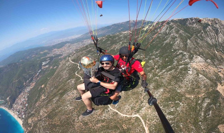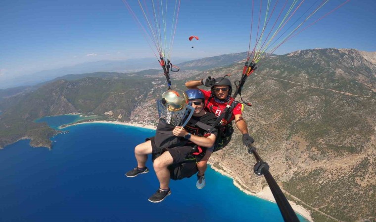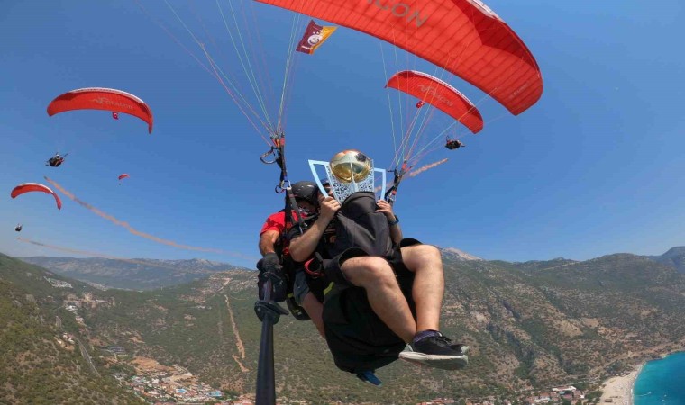 Fethiye Galatasaray Taraftarlar Derneği’nin düzenlediği şampiyonluk balosu için Fethiye’ye getirilen Galatasaray 2023-2024 Trend Yol Süper Lig Kupası, dünyanın en gözde yamaç paraşütü merkezi olan Babadağ’dan Ölüdeniz Belcekız pilotları tarafından uçuruldu.