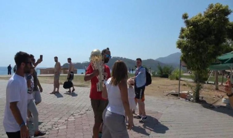 Fethiye Galatasaray Taraftarlar Derneği tarafından 24. şampiyonluk kutlaması için Fethiye’ye getirilen, 2023-2024 Trendyol Süper Lig şampiyonluk kupası, teleferik ile Babadağ’ın bin 700 metre pistine çıkarıldı. Kupa, Babadağ’da yamaç paraşütü pilotları Naci Paksoy, Onur Karadağ, Uğur Soyuer, Burak Pınar ve Furkan Hatipoğlu’na teslim edildi. Hazırlıkların ardından yamaç paraşütü pilotu Naci Paksoy, yolcusu ve kupayla uçuş yaptı. Uçuş sırasında gökyüzünde diğer paraşütlerle de Galatasaray ve Türk bayrakları dalgalandırıldı. Gökyüzünde Ölüdeniz manzarasında paraşütlerle havalanan pilotlar yaklaşık yarım saat boyunca gökyüzünde uçarken, Belcekız Plajı’na Galatasaray marşları eşliğinde güvenli bir iniş yapıldı. Şampiyonluk kupasını Galatasaraylı taraftarlar karşılarlarken büyük bir coşku yaşandı. Sahilde bulunanlar ise kupa ile hatıra fotoğrafı çektirdi.