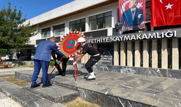 Fethiye Kaymakamlık Binası Atatürk büstü önünde gerçekleşen tören, çelenk sunma ile başlayıp saygı duruşunda bulunulması ve İstiklal Marşı’nın okunması ile devam etti.